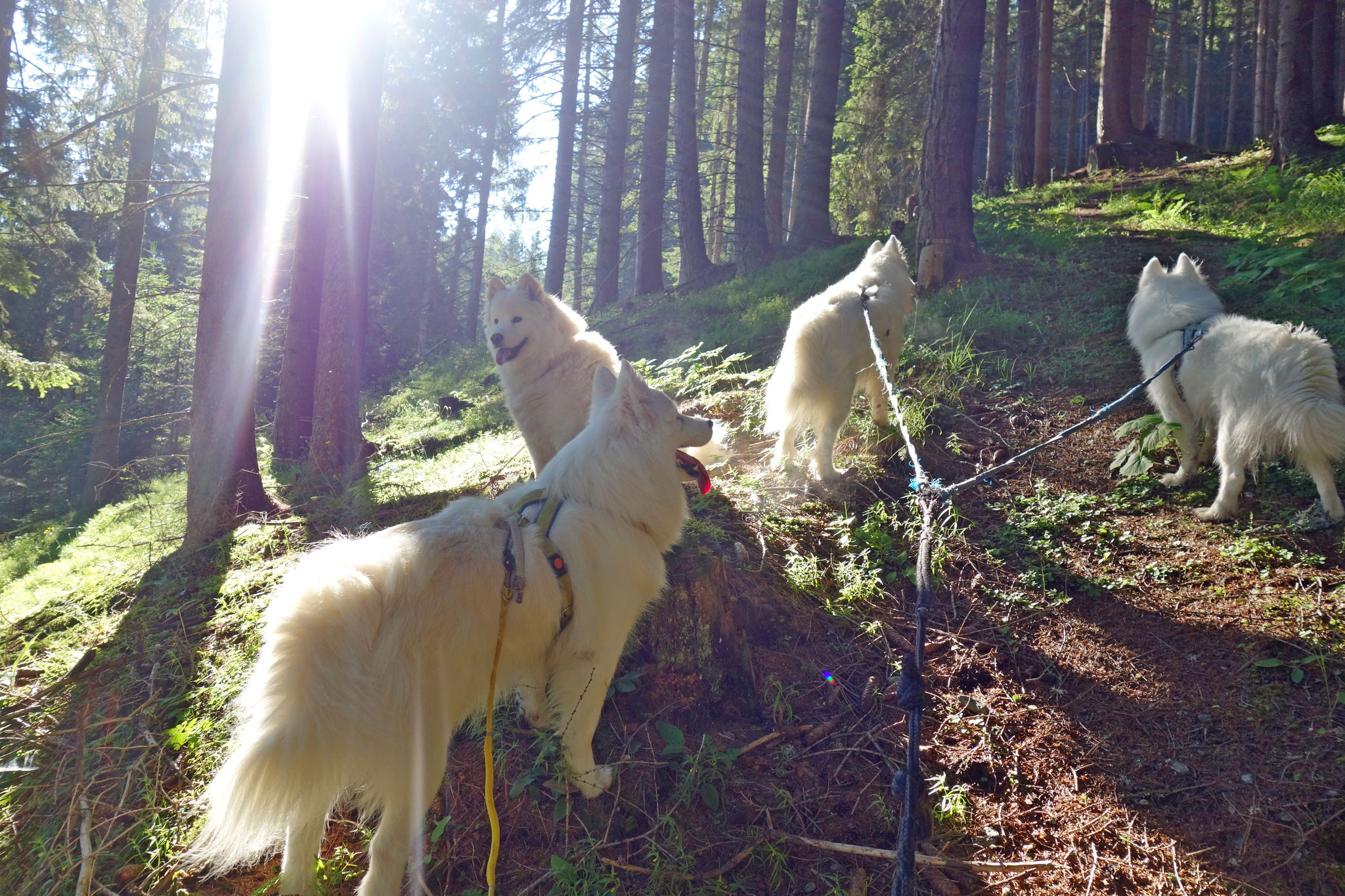 schon sehr früh gehts heute los, die Runde Karlsberg am Aineck ist geplant. Auf der Schattseite gelegen geht man lange im angenehmen kühlen Schatten und kann so auch im Sommer bei frühem Start einige Stunden unterwegs sein. Wie fast überall gibt es auch da viel Wasser für die Hunde.