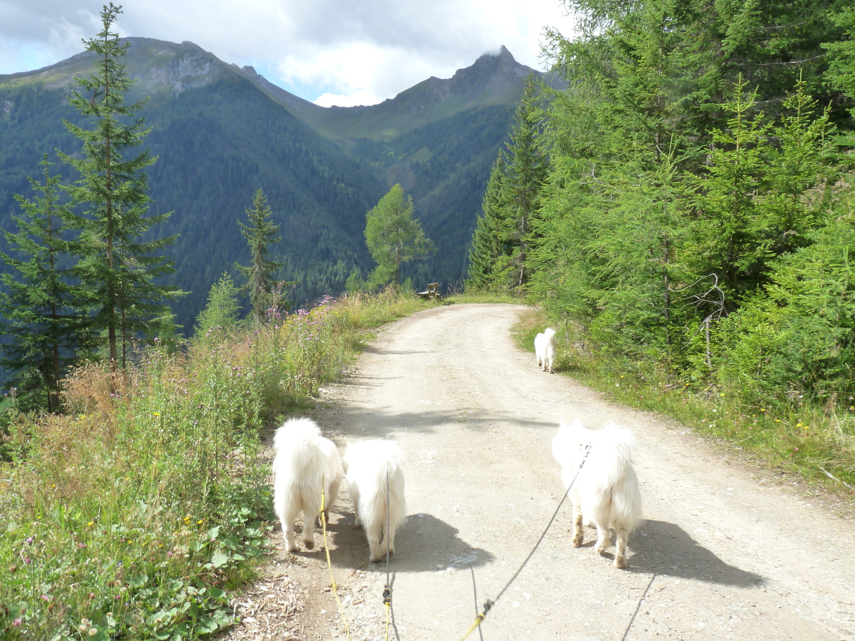 und das ist zur Zeit gar nicht so einfach. Hier gibt es sehr viele Waldweiden, d.h. schon mitten im Wald stößt man auf ein Viehgatter und muß mit Kuhbegegnungen rechnen. Da ich mir den Stress nicht antun will heißt es dann für uns umdrehen. Da kam ich auf die Idee, es einmal im Hochfeindkamm in den Radstädter Tauern zu probieren-. Dort sind die Waldflanken schon sehr steil und zu hoffen daß ich recht spät zu den Gattern komme.