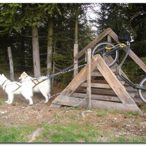 Der Samojede ist ein sportlicher Hund, sollte es jedenfalls sein. Er sollte vom Kopf her willens und vom Gebäude her in der Lage sein, weite Strecken im Trab vor einem Bike, Scooter, Trainingswagen oder Schlitten zu laufen. Er sollte gern ziehen, diese Leidenschaft sollte man im keinesfalls abtrainieren und austreiben. Für mich gibt es fast nichts schöneres, als mit meinen Samojeden zu jeder Jahreszeit "on Tour" zu sein, zu Fuß oder mit einem der oben genannten Trainingsgeräte.